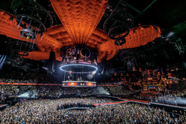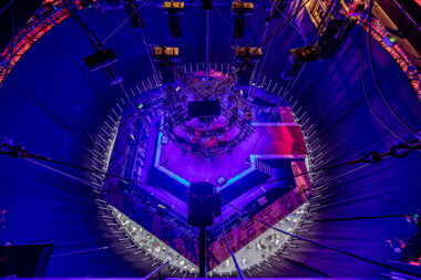 The impressive LED cylinder in the middle of the venue, with a surface of 258 m², is a real statement. This cylinder consists of two parts, with the bottom able to come down and function as a bar. Roe LED strips are mounted on the inside. Besides this cylinder, the chandeliers are also eye-catchers in the venue. These chandeliers consist of 210 PixelDrop LED strings, each 2.4 meters long, an innovative video decoration that creates a unique atmosphere.