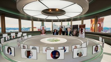 Das Publikum kann auf Miniaturansichten gestreamt werden, so dass jeder im Bild ist. Redner oder Moderatoren an verschiedenen Standorten können visuell „live“ neben dem Moderator gestreamt werden, so dass es so aussieht, als wären sie live auf der Bühne.