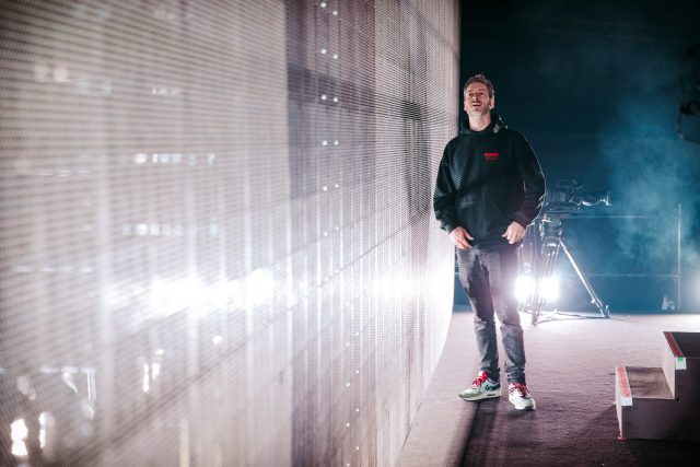 Das Publikum konnte die Show aus nächster Nähe verfolgen. Bilder der Bandmitglieder und die gesamte Show wurden auf eine 10 mm dicke, halbtransparente, ultraleichte Glux-LED-Leinwand projiziert. Diese Leinwand lieferte extrem scharfe und klare Bilder.