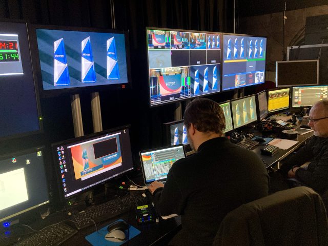 Les nominés en direct avec l'animateur à l'écran