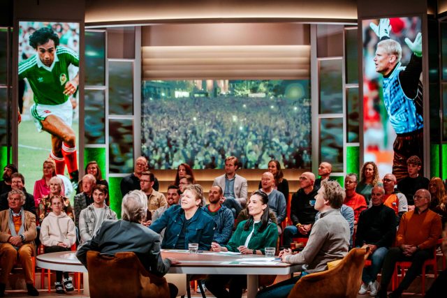NOS Studio WK 22 est le titre du talk-show où NOS invite des analystes de football et d’autres invités à parler en studio sur ce qui se passe pendant et autour des matchs de la Coupe du monde. Le talk-show est diffusé chaque soir pendant toute la durée de la Coupe du monde depuis le Studio 4 à Hilversum. Avec un public. Le client nous a présenté un concept sur la base duquel nous avons réalisé un certain nombre de solutions LED de haute qualité.